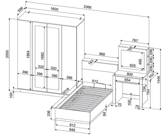Возможна комплектация кровати подъемным механизмом. Стоимость указана за набор со стационарным основанием. Спальное место 900х2000.