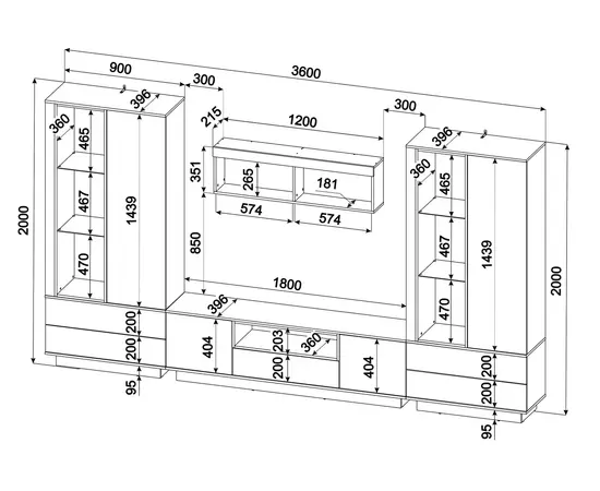 Набор мебели для жилой комнаты Quartz-3 (Гостиная-3) дуб нокс