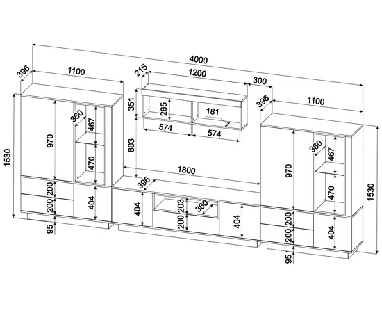 Набор мебели для жилой комнаты Quartz-5 (Гостиная-5) дуб нокс