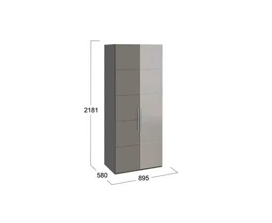 Наоми СМ-208.07.04 Шкаф для одежды с 2 дверями (Зеркало+Глухая) R (фон серый, джут)