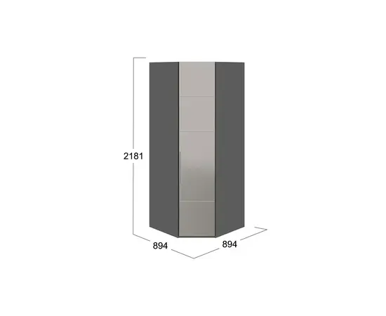 Наоми СМ-208.07.07 Шкаф угловой с 1 зеркальной дверью R (фон серый, джут)