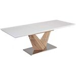По типу материала предлагаем купить в Минске обеденные столы, выполненные из различных комбинированных материалов: стекло и сталь, МДФ и сталь, дерево и МДФ, дерево, МДФ и шпон, ЛДСП и металл и т.д. Столешницы из МДФ, ЛДСП отличаются реалистичной фактурой под дерево (венге, бук, дуб, черешня, орех и т.д.); некоторые модели выполнены в белом, черном, сером цвете, имеют разноцветное исполнение.