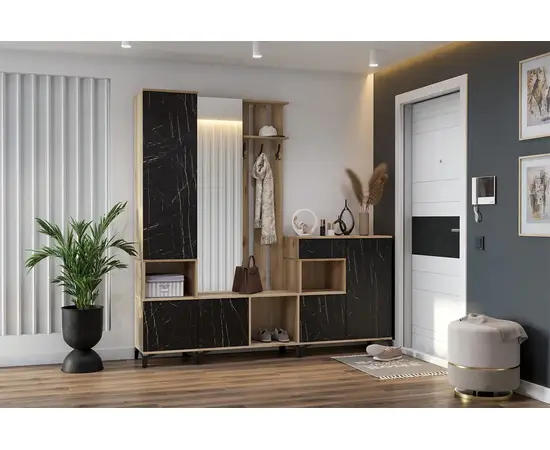Обувница Луксор-14 (дуб делано светлый/камень пьетра черный)