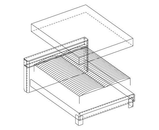 Ортопедическое основание. Ключевую роль в этой конструкции играют ламели — слегка выгнутые планки, изготовленные из натуральных материалов. При возникновении нагрузки на определенном участке, планки прогибаются под силой тяжести, оставаясь достаточно упругими, чтобы не «просесть» в обратную сторону. Благодаря своей гибкости и большому количеству, ламели равномерно распределяют вес по всей площади спального места, обеспечивая ортопедический эффект.