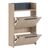 - Большую нижнюю часть занимают две вертикальные откидные полки для обуви. За счет способа расположения получилось уменьшить ширину всей тумбы.