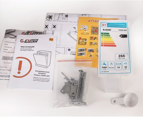 Посудомоечная машина EXITEQ EXDW-I605 – это полновстраиваемый агрегат: она полностью прячется под столешницу и закрывается спереди навесным фасадом. Посудомоечная машина подключается к холодной воде: она нагревается уже после поступления в агрегат. Благодаря этому владелец техники не зависит от сезонного отключения горячей воды.