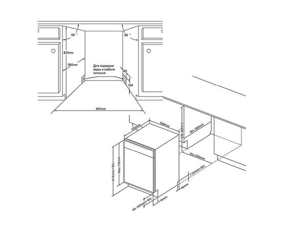 Полноразмерная встраиваемая посудомоечная машина шириной 60 см на 14 комплектов посуды. Внутренняя поверхность выполнена из нержавеющей стали толщиной 0.6-0.8 мм, что обеспечит долгий срок службы при активном использовании.