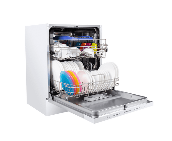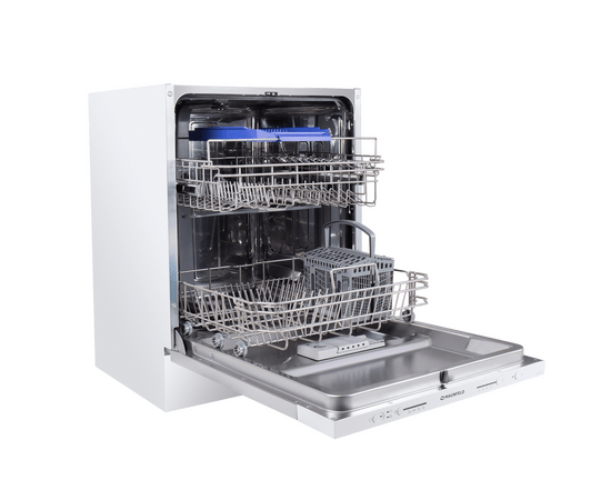 Полноразмерная встраиваемая посудомоечная машина шириной 60 см. Благодаря использованию специальных корзин и дополнительного лотка для столовых приборов позволяет вымыть 14 комплектов посуды. Внутренняя поверхность выполнена из нержавеющей стали толщиной 0.6-0.8 мм, что обеспечит долгий срок службы при активном использовании.