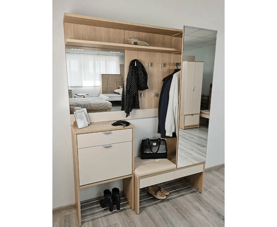 - Дополнительная тумба для обуви с мягким сидением (Модуль 7, 8).