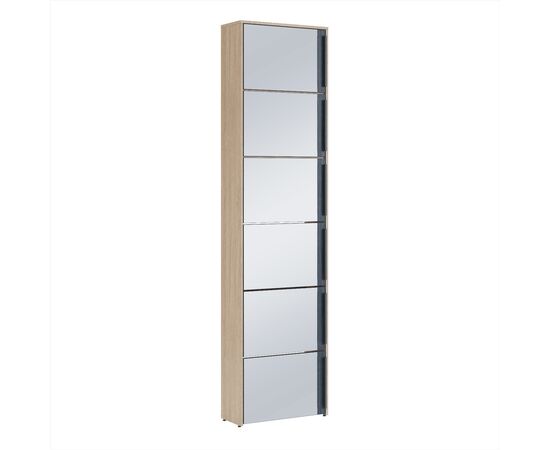 - Высокий вместительный шкаф для обуви с зеркальными фасадами.