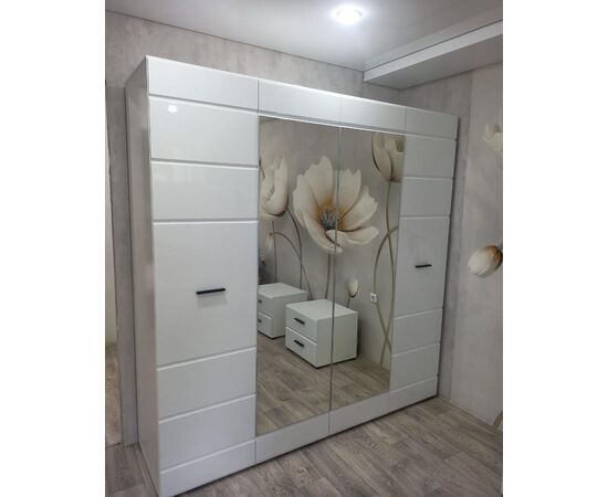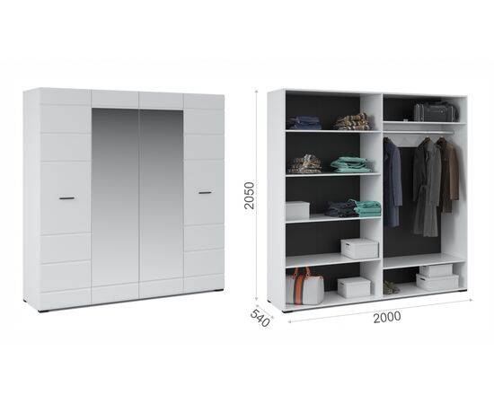 Распашной шкаф Йорк 4дв Белый/белый глянец