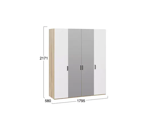 Рико СМ-340.07.443 Шкаф комбинированный с 2 глухими и 2 зеркальными дверями (яблоня беллуно/белый глянец)