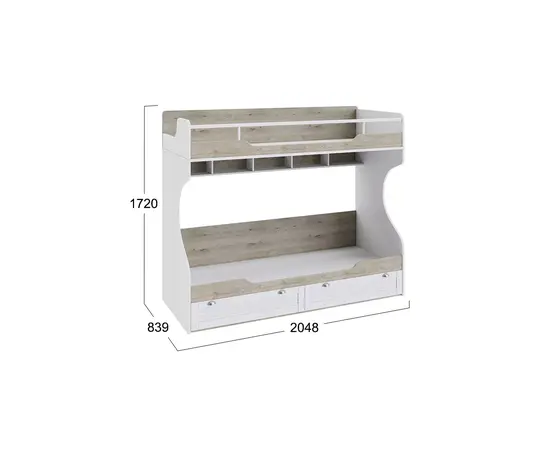 Ривьера ТД-241.11.01 Кровать 2х ярусная (без лестницы) (дуб бонифацио/белый)
