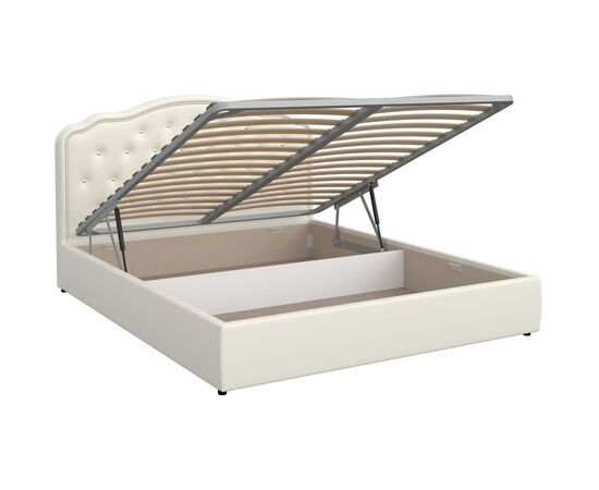 Основание кровати металлокаркас или подъёмный механизм, простые и надёжные. Здесь же есть и вместительный ящик для белья - незаменимый элемент кровати для тех, кто не может похвастаться просторной спальней.