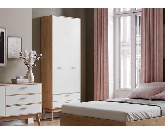 Шкаф Калгари 2-х дверный 2200 (дуб натуральный светлый/белый матовый)