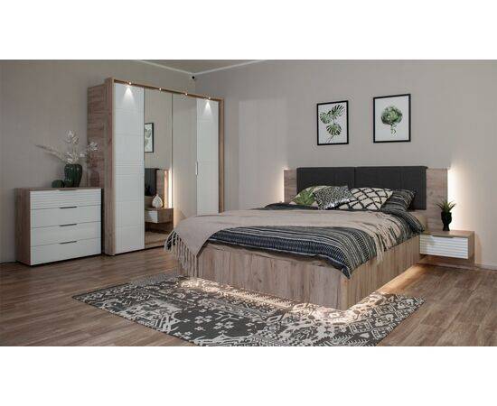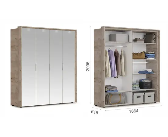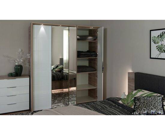 Шкаф четырехдверный Джулия Дуб крафт серый/Белый глянец ДДДД без портала