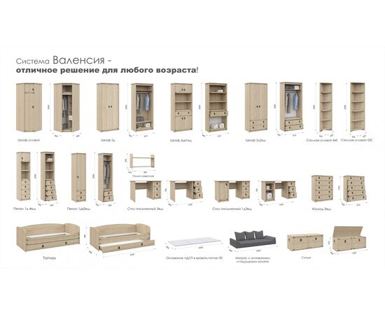 Шкаф для детской Валенсия 4д1ящ Дуб сонома