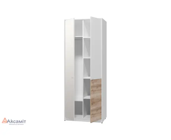 Шкаф для одежды и белья 2-х дв с зерк (изм размер зеркала) Scandica Vendela 9 (белый гладкий шелк/ дуб сакраменто)