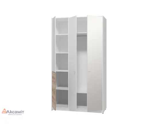 Шкаф для одежды и белья 3-х дв с зерк (изм размер зеркала) Scandica Vendela 10 (белый гладкий шелк/ дуб сакраменто)