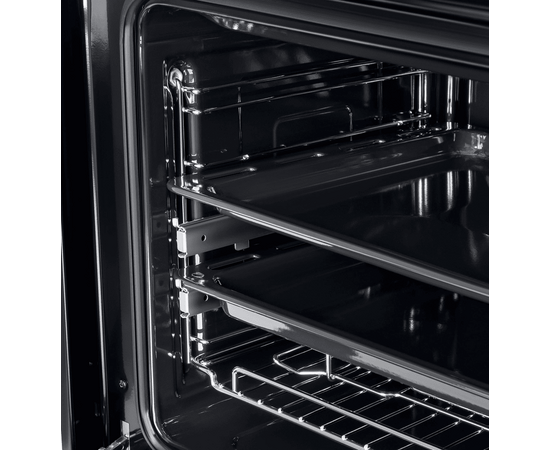 Объем 59 л при стандартных размерах 60 см позволяет готовить одновременно несколько блюд, разместив решетку или противень на одном из 5 уровней боковых направляющих. Два уровня оснащены удобными телескопическими направляющими. Дверца духового шкафа состоит из 2-х стекол, что создает холодный фронт и делает процесс приготовления безопасным, исключая возможность ожога при касании. Внутреннее стекло имеет трамп-линии.