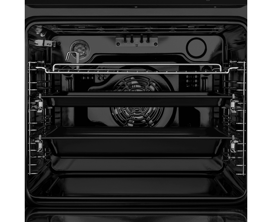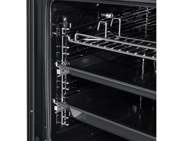 Объем 76 л при стандартной ширине 60 см позволяет готовить одновременно несколько блюд, разместив решетку или противень на одном из 6-ти уровней боковых направляющих. Два уровня оснащены удобными телескопическими направляющими. Внутреннее покрытие камеры выполнено из специальной легкоочищающейся эмали черного цвета.