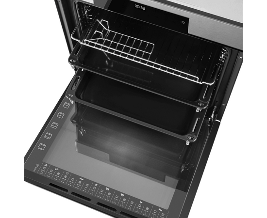 Объем 76 л при стандартных размерах 60 см позволяет готовить одновременно несколько блюд, разместив решетку или противень на одном из 6 уровней боковых направляющих. Два уровня оснащены удобными телескопическими направляющими. Внутреннее покрытие камеры выполнено из специальной легкоочищающейся эмали черного цвета.