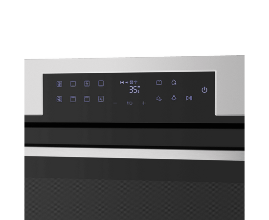 Сенсорный программатор FULL TOUCH с дисплеем COLD WHITE интуитивно понятен и удобен в использовании. Сенсорное управление позволяет выбирать режимы нагрева, температуру, длительность готовки, устанавливать таймер, включать функцию бустер и блокировать панель управления. В данной модели поддерживается 11 режимов работы: традиционный нагрев, пицца, разморозка, конвекционный нагрев, нижний нагрев, горячий воздух, малый гриль, большой гриль, брожение, объемный турбогриль, внутреннее освещение.