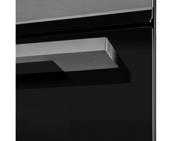 Фронтальная панель дверцы сделана из высококачественного жаропрочного стекла черного цвета, окрашенного по всему объему, что является отличительной чертой бытового прибора премиум-класса. Лицевая часть блока управления, нижняя часть фасада и ручка дверцы выполнены из полированной нержавеющей стали.
