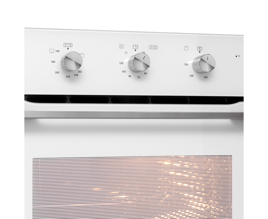 Механическое управление осуществляется цельнометаллическими поворотными ручками. Можно выбрать режим работы, температуру и установить таймер (0-60 мин). В данной модели поддерживается 4 режима работы: нижний газовый нагрев с вентилятором (конвекция), традиционная готовка, газовый гриль, освещение. Данный тип газового духового шкафа имеет отличительную характеристику – работает как при открытом, так и при закрытом гриле.