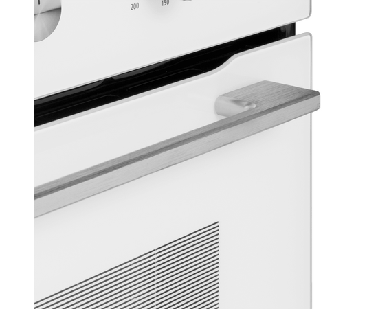 Фронтальная панель духовки выполнена из высококачественного жаропрочного тонированного стекла черного цвета и вставок из нержавеющей стали. Ручка дверцы, сделанная из матированной металла, не нагревается в процессе готовки.
