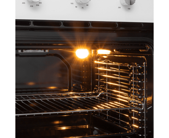 Надежность духового шкафа обеспечивается полным газ-контролем – система, которая перекрывает подачу газа, если потух огонь. Автоматический электроподжиг является дополнительным преимуществом этой модели.