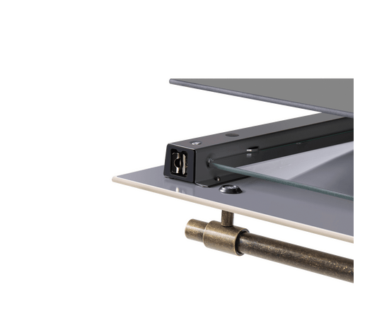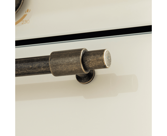 Фронтальная панель сделана из высококачественного тонированного жаропрочного стекла цвета слоновой кости. Цельнометаллическая фурнитура цвета состаренной бронзы, выполненная в рустикальном стиле, идеально дополняет общий образ.