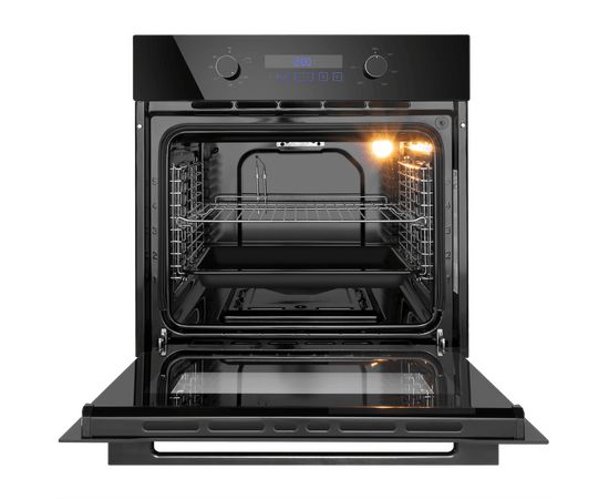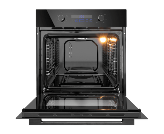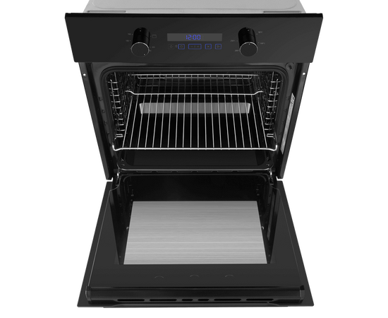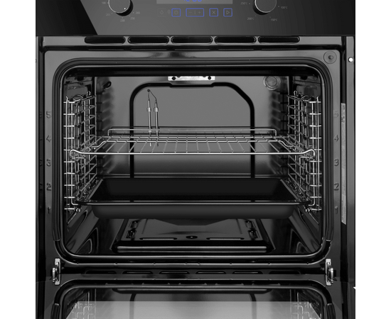 Объем 70 л при стандартной ширине духового шкафа 60 см позволяет готовить одновременно несколько блюд, разместив решетку или противень на одном из 5-ти уровней боковых направляющих. Внутреннее покрытие камеры выполнено из специальной легкоочищающейся эмали черного цвета.