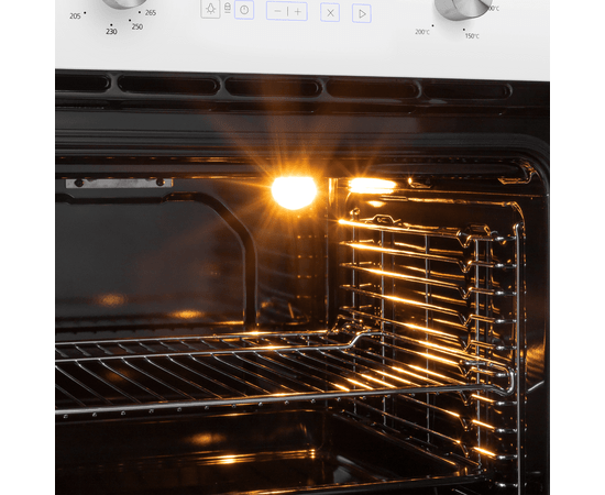 Надежность духового шкафа обеспечивается полным газ-контролем – система, которая перекрывает подачу газа, если потух огонь. Автоматический электроподжиг является дополнительным преимуществом этой модели.