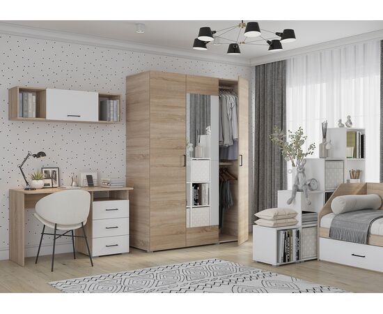 Шкаф Горизонт 1300 3-х. ств. 1 зеркала (дуб сонома/ дуб сонома)