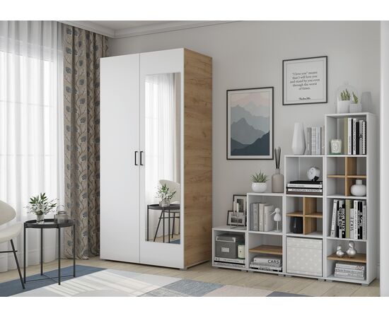 Шкаф Горизонт 900 2-х. ств. 2 зеркала (дуб сонома/ белый)