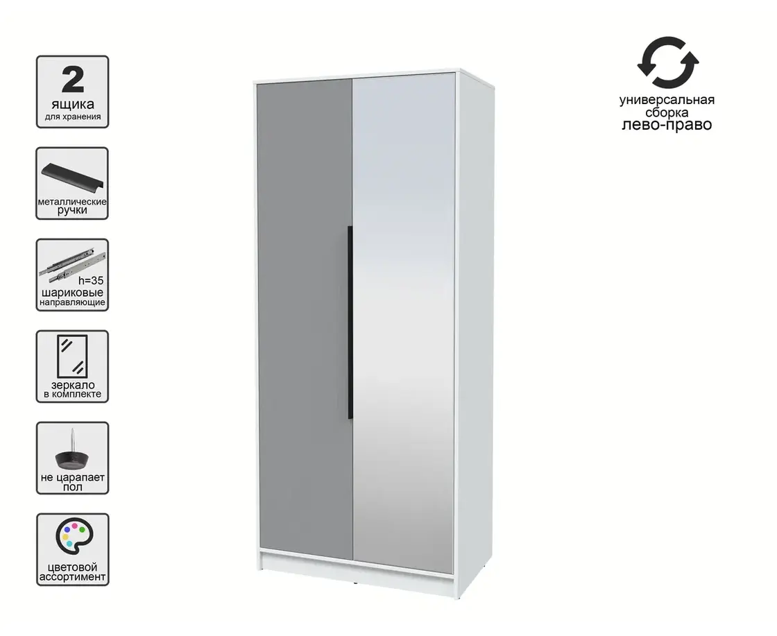 Шкаф комбинированный КТ-Ш2(з) Концепт (белый/серебро)