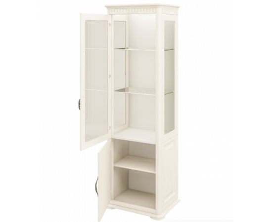 Шкаф комбинированный с витриной и классической фрезеровкой; В распашных дверках петли: GTV с доводчиком; Нагрузка на стеклянную 1 полку до 2,5 кг В шкафу меняется положение дверцы - может быть левой или правой; Опционально: подсветка диодная для стеклянных полок (трансформатор, блок светодиодный)