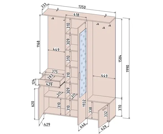 Шкаф комбинированный Вита-7 (персидский жемчуг/дуб золотой)