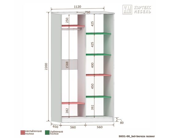 Шкаф-купе Лагуна ШК01-00 1120/2200/650 (белый/береза)