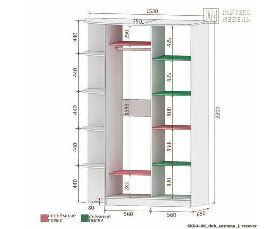 Шкаф-купе Лагуна ШК04-00 1520/2200/650 правый и левый (дуб сонома)