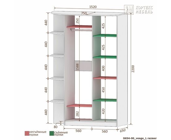 Шкаф-купе Лагуна ШК04-00 1520/2200/650 правый и левый (венге)