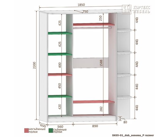 Шкаф-купе Лагуна ШК05-01 1850/2200/650 правый и левый (дуб сонома)