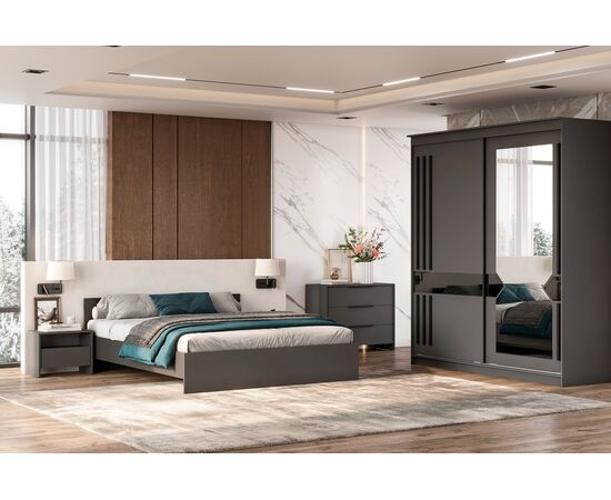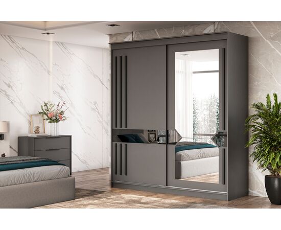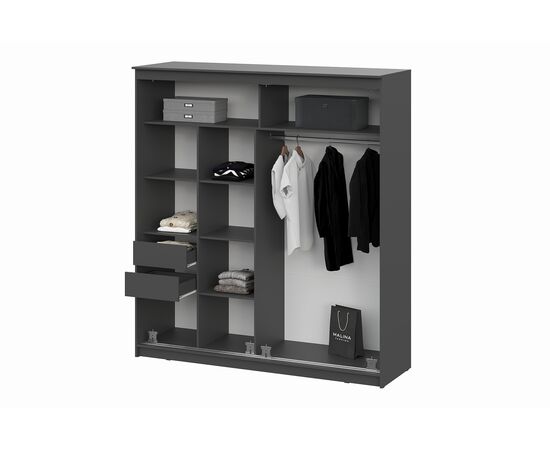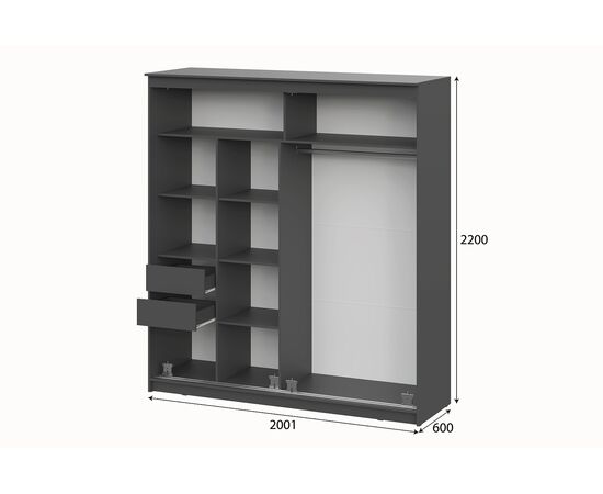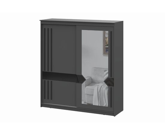 Шкаф-купе NN Мебель К №25 (2,0 м) Блэк ЛАЙТ Графит серый/Лакобель/Черный матовый