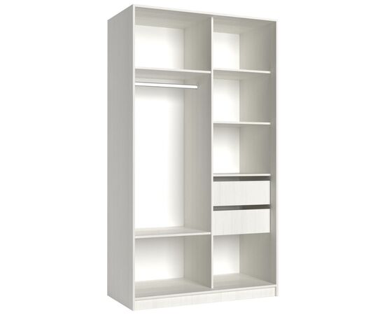 Стеллаж крепится евростяжкой к боковине шкафа. Универсальный (собирается на любую из сторон, правую или левую).