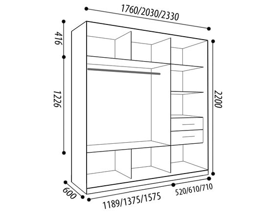 | КОД | Ширина шкафа-купе | Высота | Глубина | Доступность | Цена | ||