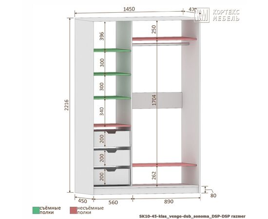 Шкаф-купе СЕНАТОР ШК10-45 фотопечать 1450/2216/450 (венге/дуб сонома)