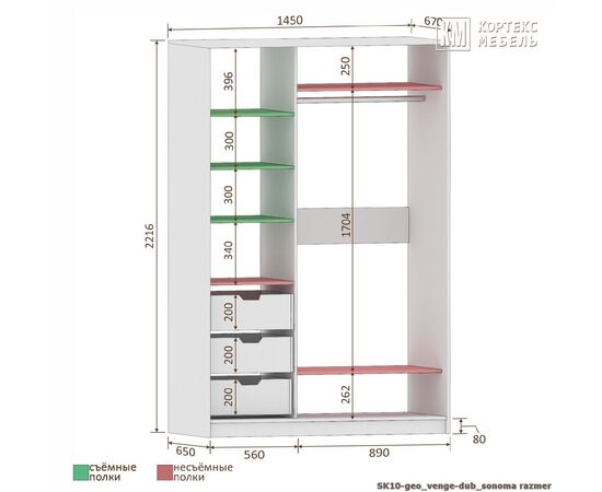 Шкаф-купе СЕНАТОР ШК10 геометрия 1450/2216/650 (венге/дуб сонома)