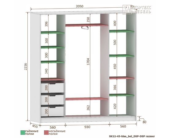 Шкаф-купе СЕНАТОР ШК12-45 фотопечать 2050/2216/450 (белый)