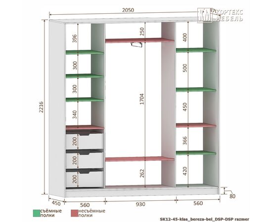 Шкаф-купе СЕНАТОР ШК12-45 фотопечать 2050/2216/450 (береза/белый)